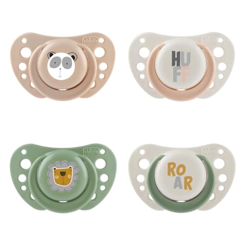 Chicco PhysioForma Sucette Light 16-36 mois, sucette avec tétine en silicone, la respiration physiologique et encourage le développement de la bouche, lot de 4 pièces, couleurs assorties rose