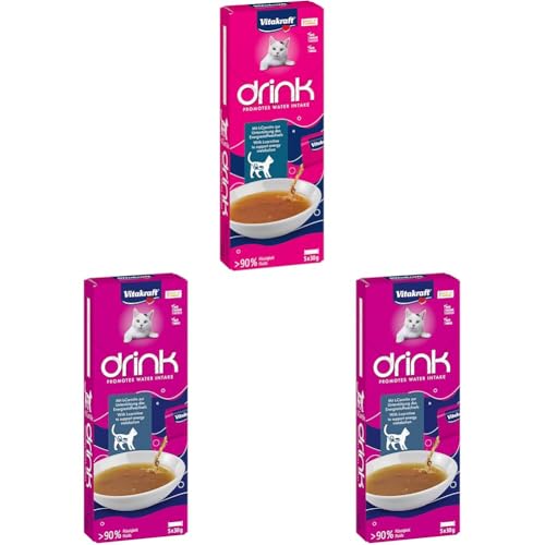 Vitakraft Drink, friandise Liquide pour Chats, Snack pour favoriser l'hydratation, au Saumon, en sachets individuels, sans ajout de Sucre (3 Paquet de 5 x 30g)