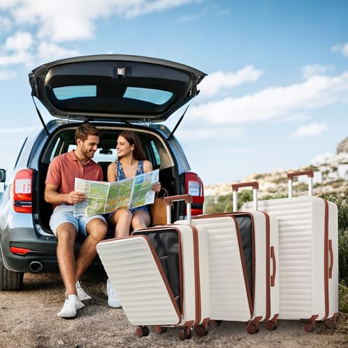 VSOGA Ensemble de bagages en trois pièces - Design innovant d'ouverture avant + porte-gobelet pliable, matériau ABS, serrure TSA, roulettes à 360 °, convient aux valises de voyage M (20 pouces), L (24