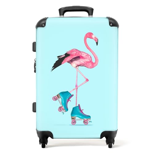 NoBoringSuitcases.com Valise Enfant Grande Taille (67cm - 72L) avec Roulettes et Serrure TSA, Suitcase Fille (Flamant Rose - Bleu)