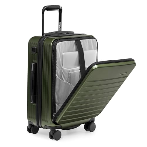 Hanke Top Open 20 inch Carry on Luggage Hard Shell Suitcases with Spinner Wheels Suitcase for Men Women TSA Travel Suit Case Lightweight Wide Handle Rolling Luggage(Bamboo Green)
