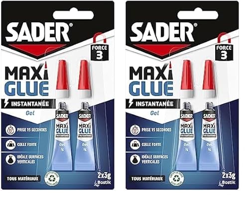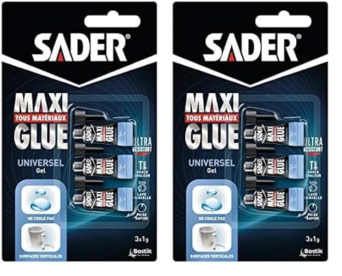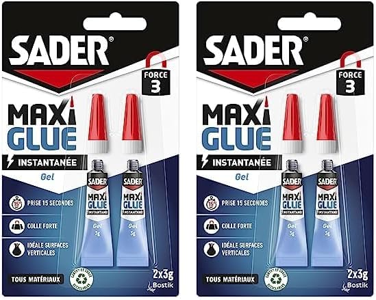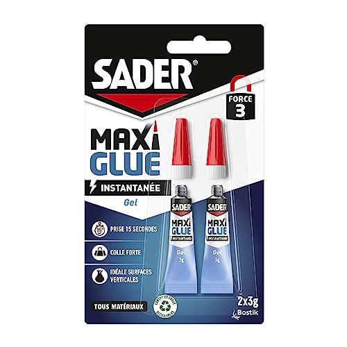 Sader Maxiglue Gel – Super Glue Universelle – Tous Matériaux – Colle de Réparation à Prise Rapide – Colle Extra Forte – Transparente – 2 Tube de 3 g (Lot de 2)