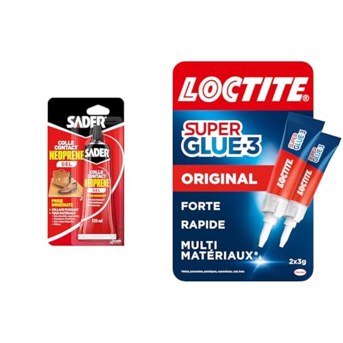 Sader Colle Contact Néoprène Gel – Colle Extra Forte Tous Matériaux – Prise Immédiate & Loctite Super Glue-3 Original, colle forte et résistante de haute qualité