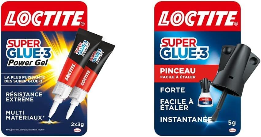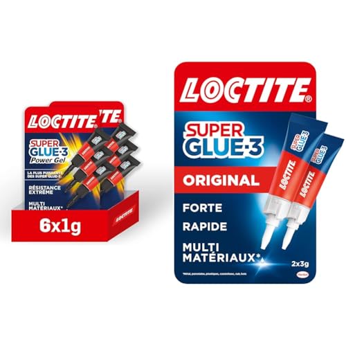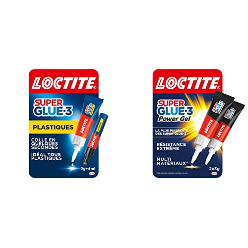 Lot de 2 produits Loctite - Super Glue-3 Spécial plastiques, colle forte, 4 ml & Super Glue-3 Power Gel, colle enrichie en caoutchouc, gel ultra-résistante, à séchage immédiat, lot de 2 tubes 3 g