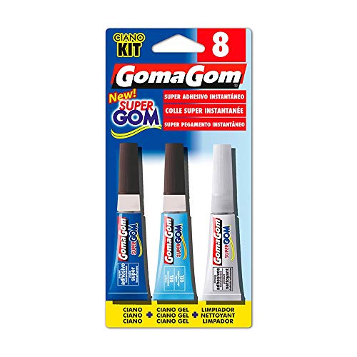 GOMAGOM - Colle super instantanée pack de 3 pcs - CIANO 3 g + CIANO GEL 3 g + NETTOYANT 3 g - Glue Kit - Numéro 8
