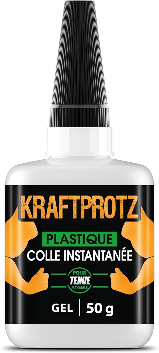 Colle forte gel 50 g – ne coule pas & ultra précise – super glue résistante à l’eau, à la chaleur & aux vibrations – colle universelle plastique, bois, métal, verre – bouchon aiguille – KRAFTPROTZ