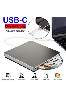 Graveur DVD externe ultra-mince USB C Type-c/burner/lecteur optique CD RW DVD RW Superdrive Disc Duplicator - Compatible avec Apple Samsung ASUS HP Dell Sony Acer et autres Macbooks, Ultrabooks, Netbooks ou ordinateurs portables sans lecteur