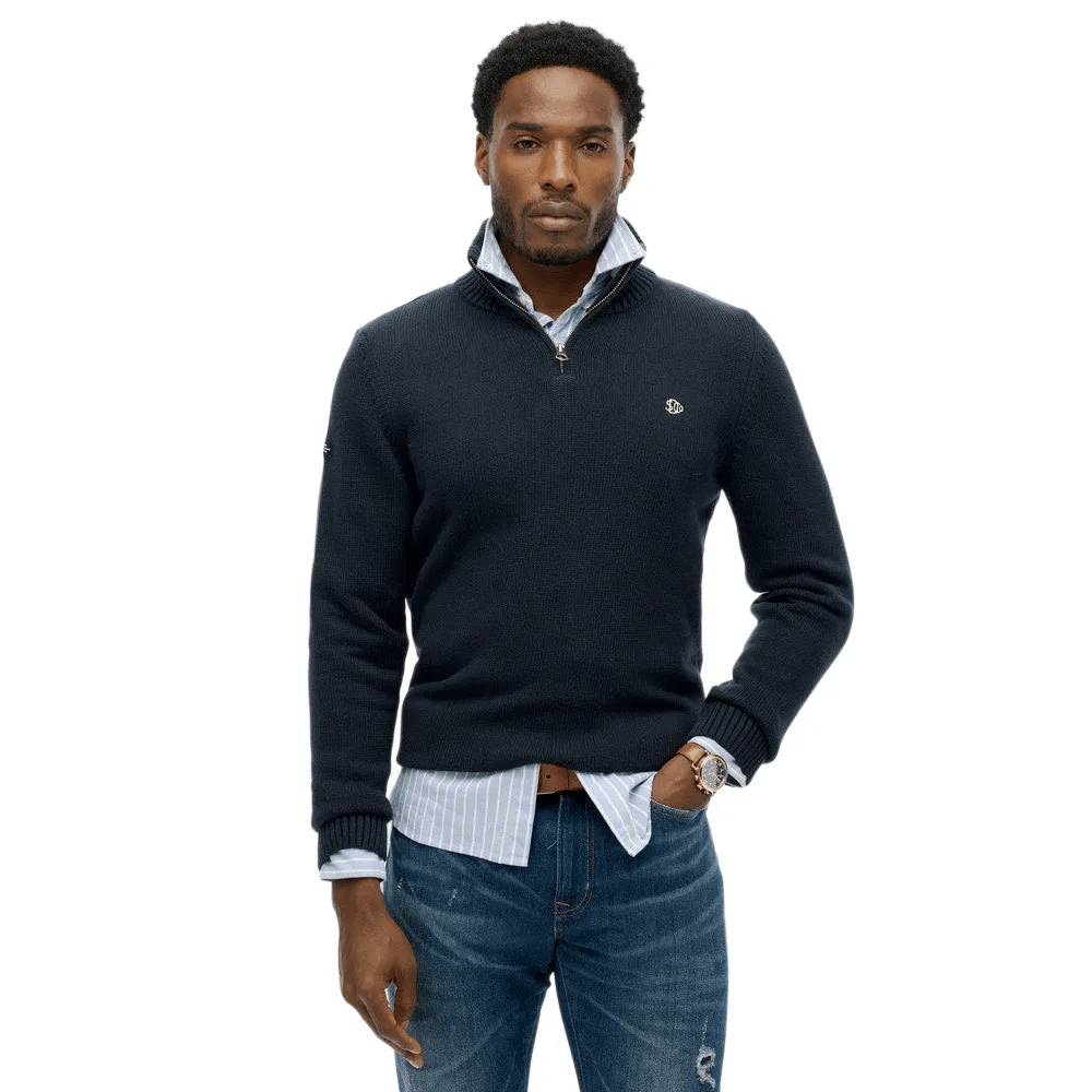 Superdry Pull Henley Homme Bleu