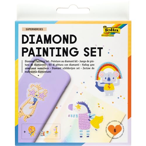 folia 31804 - Diamond Painting Set SUPERHEROES, autocollants avec motifs de super-héros et accessoires, set de bricolage pour créer des autocollants avec des pierres scintillantes