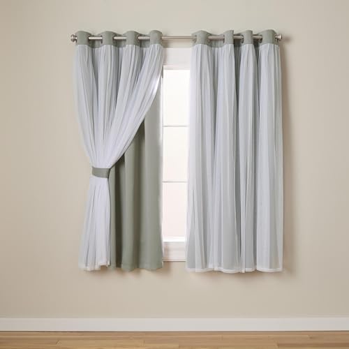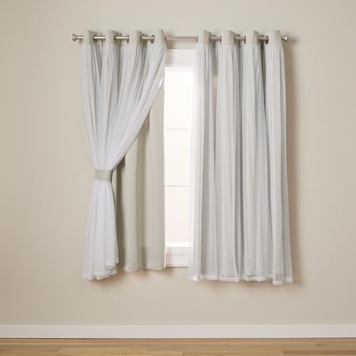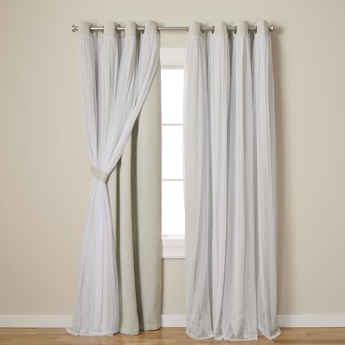 TOWN & COUNTRY LUXE Exclusive Home Catarina Paire de Rideaux Unis superposés à œillets, occultants et voilages, 132,1 x 304,8 cm, Gris Doux