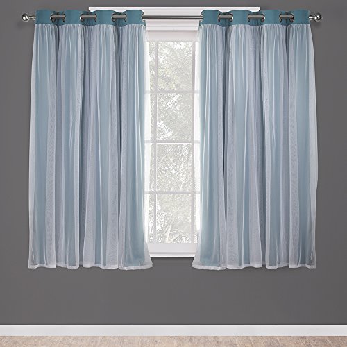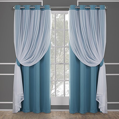 Exclusive Home Curtains Town & Country Luxe Catarina Paire de Rideaux occultants et Transparents superposés avec œillets, Polyester, Turquoise, 108 x 52 x 0,2 cm