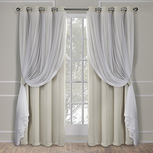 Exclusive Home Curtains Town & Country Luxe Catarina Paire de Rideaux occultants et Transparents superposés avec œillets, Polyester, Blanc Hivernal, 108 x 52 x 0,2 cm