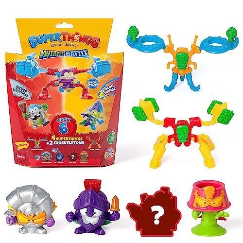 SUPERTHINGS Série Mutant Battle - Pack de 6 - Comprend 4 SuperThings (1 Capitaine argenté) et 2 Exoskeletons - Lot de 6