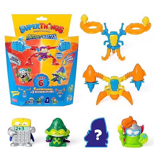 SUPERTHINGS Série Mutant Battle Pack de 6 Comprend 4 SuperThings (1 Capitaine Argenté) et 2 Exoskeletons Pack 3 de 6