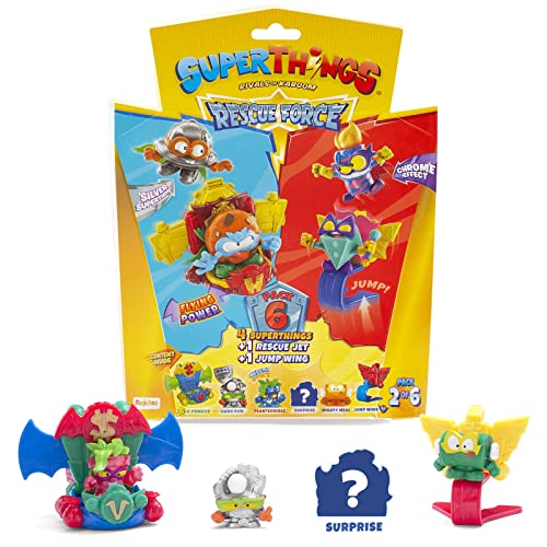 Rivals of Kaboom 8431618019610 Superthings Série Rescue Force, ce Pack Comprend 4 Figurines à Collectionner (1 Capitaine Argent Surprise et Un SuperThing Effet Chromé) + 1 Rescue Jet et 1 Jump Wing