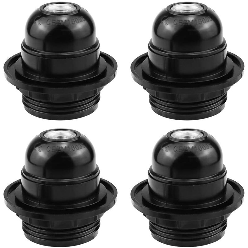 4 Pièces Douille E27 Adaptateur, Socket E27, Douille E27 Noir Vis Douille Lampe Support, D'ampoule E27 Retro,pour Ampoule Retro Fixation Douille