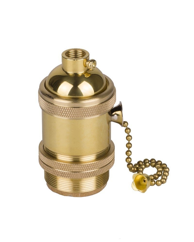 Vintage Support pour Ampoule E27 Douille Culot de Lampe Avec Interrupteur de Chaîne en Cuivre Laiton Couleur Cuivre