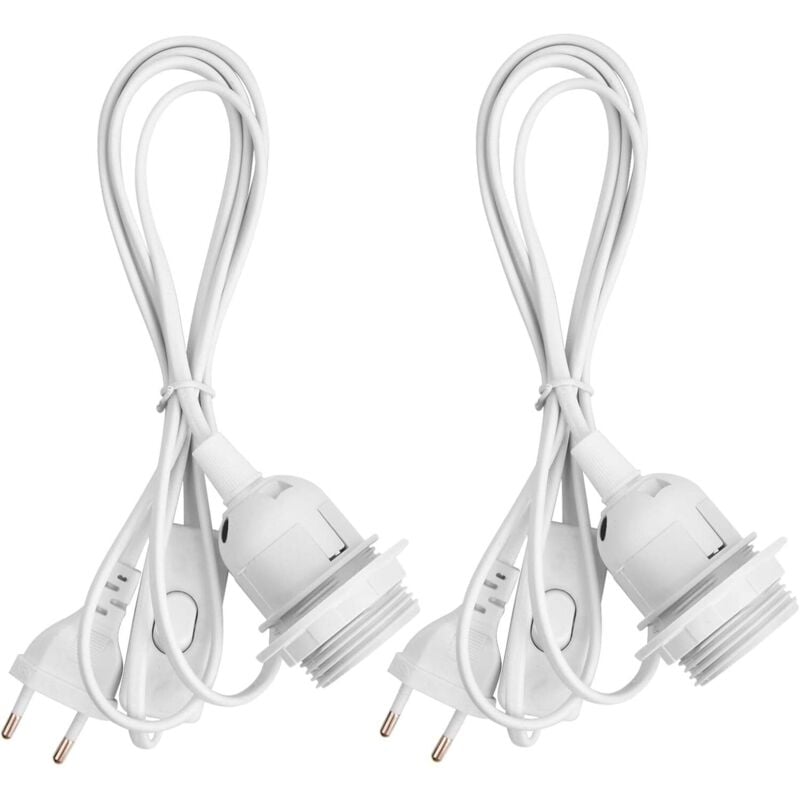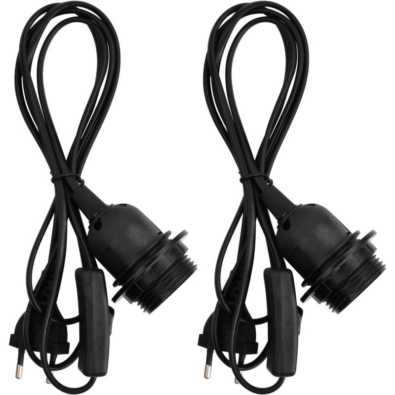 Lot de 2 Support Lampe pour Ampoule E27, Douille E27 avec Interrupteur, Porte Luminaire E27 Suspension, avec Câble d'alimentation de 1,8 m et eu