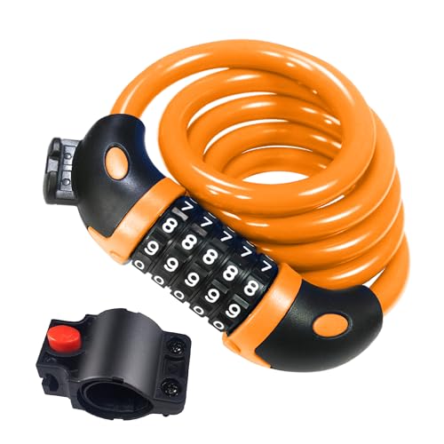 REHKITTZ Antivol Velo, 120 cm/12 mm, Niveau de Sécurité Très Élevé, avec Code Numérique à 5 Chiffres, Support de Vélo, Antivol pour Vélo, Tricycle, Scooter, Vélo