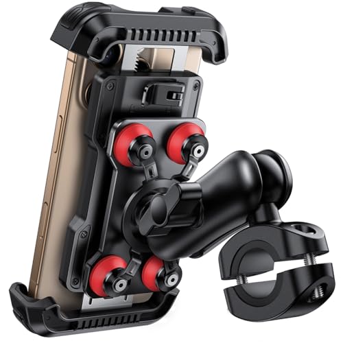 Lamicall Support Téléphone Moto - [Double Anti-vibration] Bras Extension Métal, Support Téléphone Vélo Antivol, 2X 360° Pivotant Support pour Guidon, pour iPhone 17 16 15 et 4,7-6,8" Smartphones-Rouge
