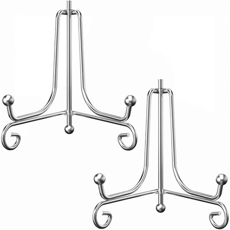 Chevalet Support Presentoir Porte Assiette - Grand Support Assiette Decorative - Metal Support Cadre Photo de Table - Présentoir pour Collection | Plaque | Livre Cuisine - Argent - 2 Pièces - 25,6 cm