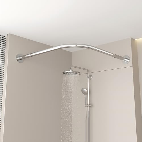 Tringle de douche sans perçage en forme de U - Support d'angle - Barre de rideau de douche en acier inoxydable - Réglable pour salle de bain, toilettes, vestiaires
