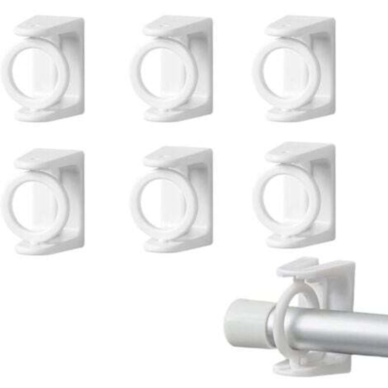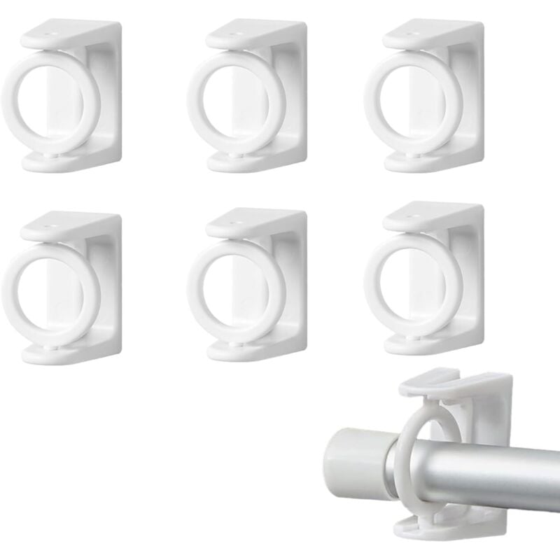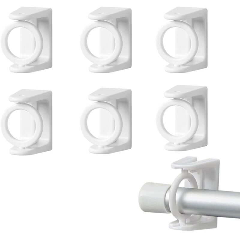 Lot de 6 Support de Tringle à Rideau de Douche, Supports Tringle Rideau Douche Auto-Adhésifs Sans Perçage, Porte Barre Rideau pour Poteaux de 4 cm de Diamètre
