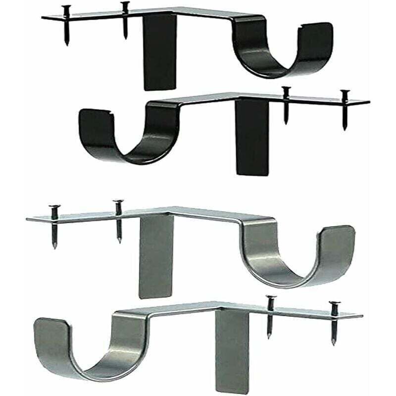 Memkey - 4 pcs Support Tringle Rideaux Sans Percage,Support Mural Réglable pour Tringle à Rideau Fixations Barre à Rideaux Accessoire Argent Noir en