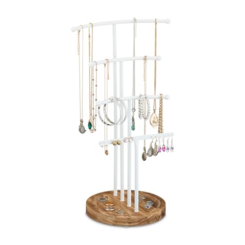 Oirlv Bois Massif T-Bar Présentoir Bijoux,Support Montre,Porte Montre Homme,Watch Stand(Blanc Crème)