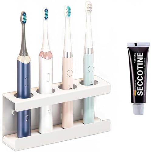 Toski Support Brosse a Dent Electrique 4 Pièces, Porte Brosse à Dents Autocollant, Adhésif Puissant, Support Brosse a Dent Murale sans Perçage, Porte Brosse à Dents Electrique pour Salle de Bain