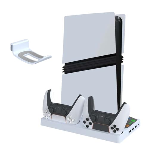 Sehawei Support Horizontal PS5 Pro/Slim avec Ventilateurs de Refroidissement à 2 Niveaux, Support de Base de Chargeur Manette ps5 et Support de Casque pour Console PS5 Slim/Pro (Not pour P5 2020)