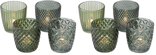 Boltze Ensemble de photophores Marilu 4 pièces (Vert, Verres décoratifs pour Bougies/Chauffe-Plats, Porte-Bougies Ø 8 cm, Motifs variés, Forme Ronde, Support pour Chauffe-Plat) (Lot de 2)