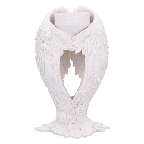 Nemesis Now Bougeoir en résine blanche en forme d'ailes d'ange de 17 cm, support pour bougie chauffe-plat soutenu par une sculpture d'ailes d'ange, décoration d'intérieur, cadeau d'ange, coulé dans la