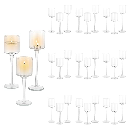 Sziqiqi 30 Pièces Bougeoir en Verre, Chandelier Support pour Bougies Piliers Bougies Chauffe-Plat Transparent, Moderne Candélabre Photophore pour Table Deco Salon Noel Maison Cadeaux de Mariage Fêtes