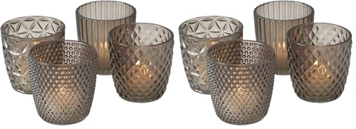 Boltze Ensemble de photophores Marilu 4 pièces (Gris, Verres décoratifs pour Bougies/Chauffe-Plats, Porte-Bougies Ø 8 cm, Motifs variés, Forme Ronde, Support pour Chauffe-Plat) 2002930 (Lot de 2)