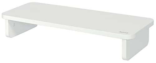 Leitz - Support pour Moniteur PC/Ordinateur Portable, Ergonomique, Rehausseur pour Écrans jusqu'à 24" / 20 kg, Rangement pour Clavier 470 mm, Gamme Ergo, Blanc, 64340001