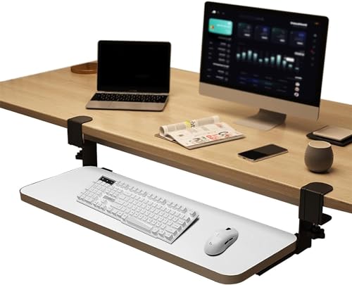 IXMLDAXD Le Clavier, Support de Clavier et Souris d'ordinateur, étagère coulissante à Pince for, Facile Installer, Ergonomique for soulager la Fatigue Musculaire(White,65x25cm(26x10Inch))