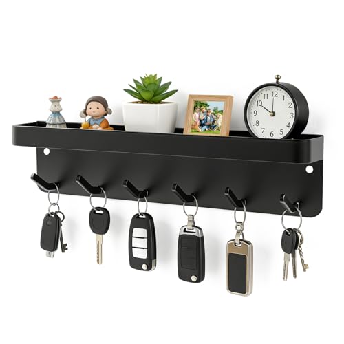 Volnamal Support mural pour clés, crochets magnétiques et plateau de rangement de courrier avec 8 crochets, support adhésif pour clés pour entrée, réfrigérateur, noir