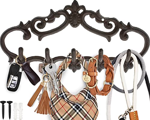 Comfify Support mural en fonte Design vintage avec 5 crochets - Clés, serviettes, etc. - Idée cadeau décorative murale, métal, robuste, rustique, vintage - rustique marron