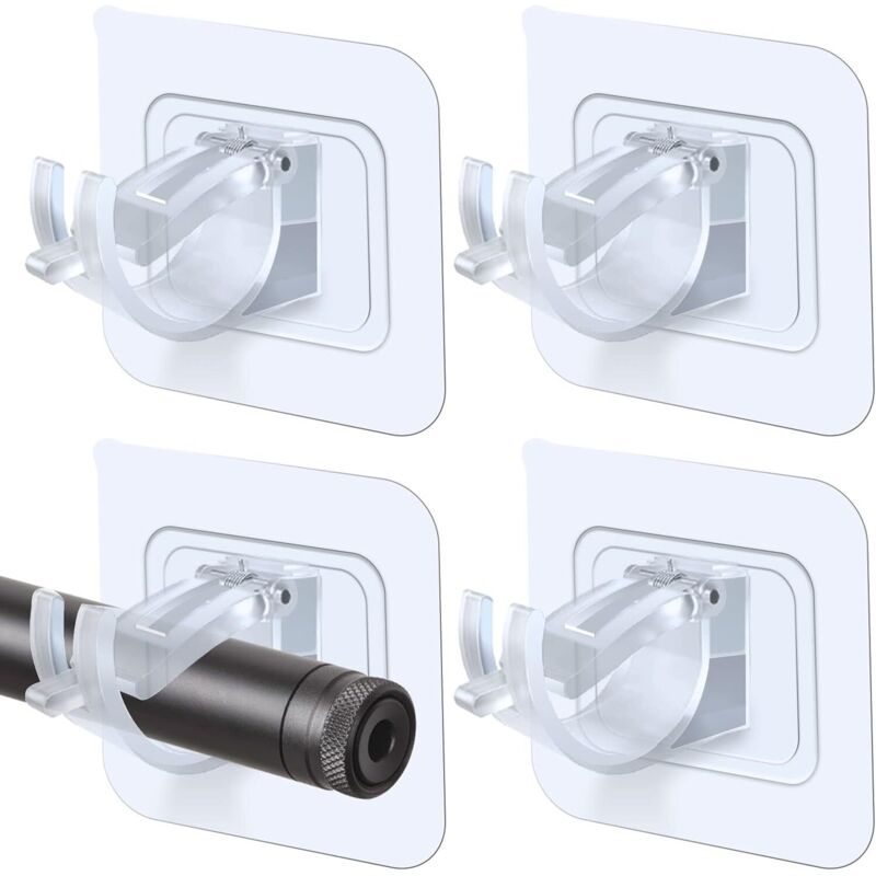 Support Tringle Rideau Sans Percage Adhésif Fort – Salle de Bain Cuisine Salon Chambre (4 Pièces Transparent)