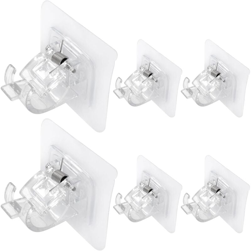 Support de tringle à rideau sans perçage – 6 pièces, supports de crochets auto-adhésifs et transparents – Convient pour une utilisation dans la salle