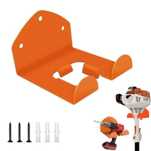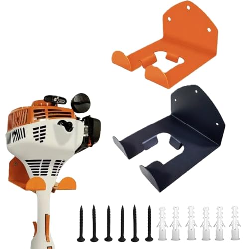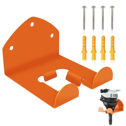 Tinoaly 2pcs Supports Muraux pour Débroussailleuse, Organiseur de Garage en Métal Robuste Support Mural Débroussailleuse Support Désherbeur Rangement pour Outils de Jardin (Orange)