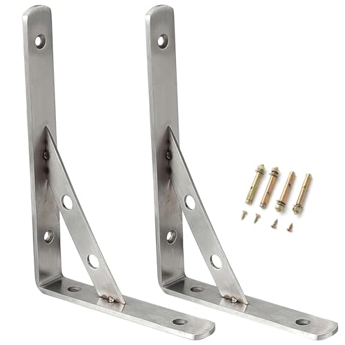 INOXLM Support d'étagère mural | Support d'étagère en fer | Étagère d'angle | Support d'étagère | 2 pièces (Large - 20 cm, Brown)