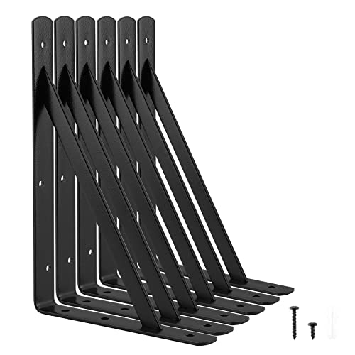 MHMYDZ Paquet de 6 - 11,25 "L x 6" H x 1,5" WJ Support d'étagère à lèvre Support d'étagère flottant en fer pour ferme industrielle rustique Support d'étagère en métal Support d'étagère en métal