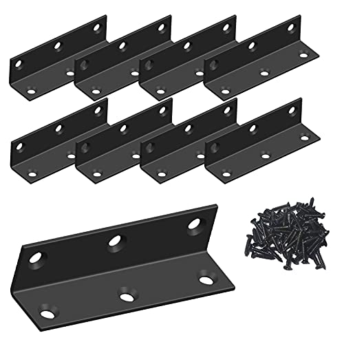 Lot de 8 supports d'étagère en fer noirs de 5 mm d'épaisseur – 15,2 x 10,2 x 3,8 cm (L x H x l) – Supports d'étagère en métal – Support d'étagère décoratif industriel – Supports d'étagère avec vis