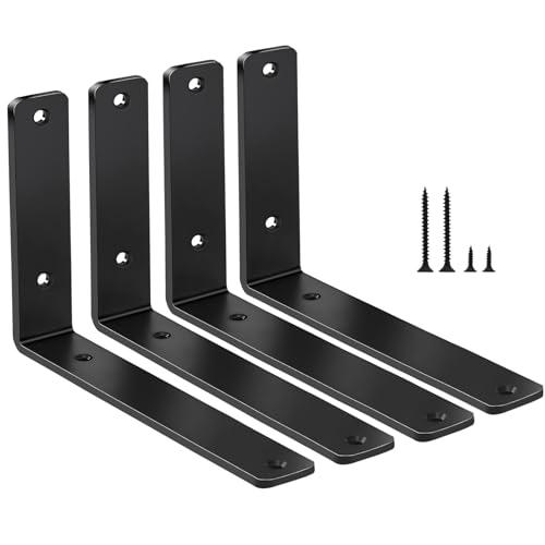 Goovilla Lot de 6 supports d'étagère flottants robustes de 25,4 cm de long pour étagères, supports de support d'étagère murale en métal avec revêtement noir de 1,27 cm d'épaisseur et 72,6 kg Capacité