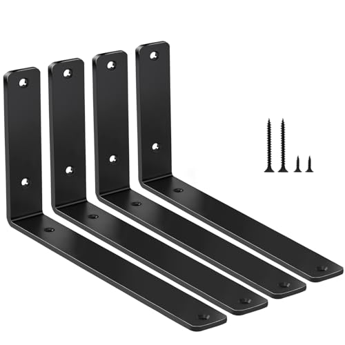 MHMYDZ Lot de 4 - L10" x H 6" x W 1.5", support d'étagère rustique de 5 mm d'épaisseur, supports d'étagère en fer, support d'étagère en métal, support d'étagère industriel, support d'étagère moderne