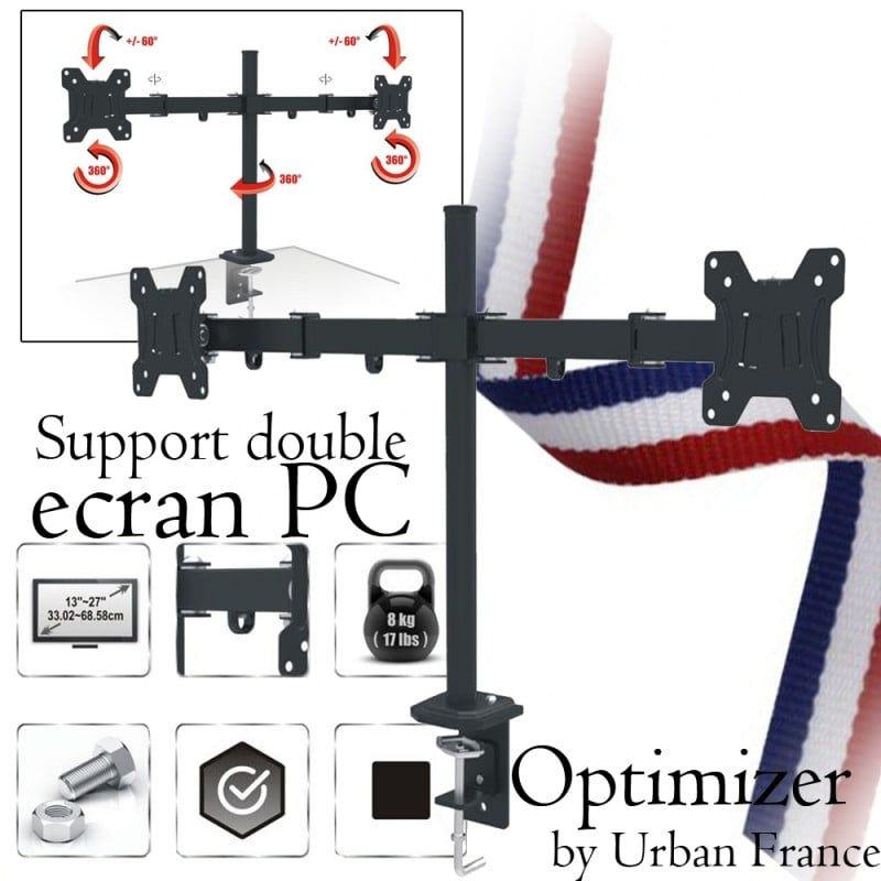 Support double écran PC 13-32" VESA 75x75 et 100x100 réglable pivot inclinable