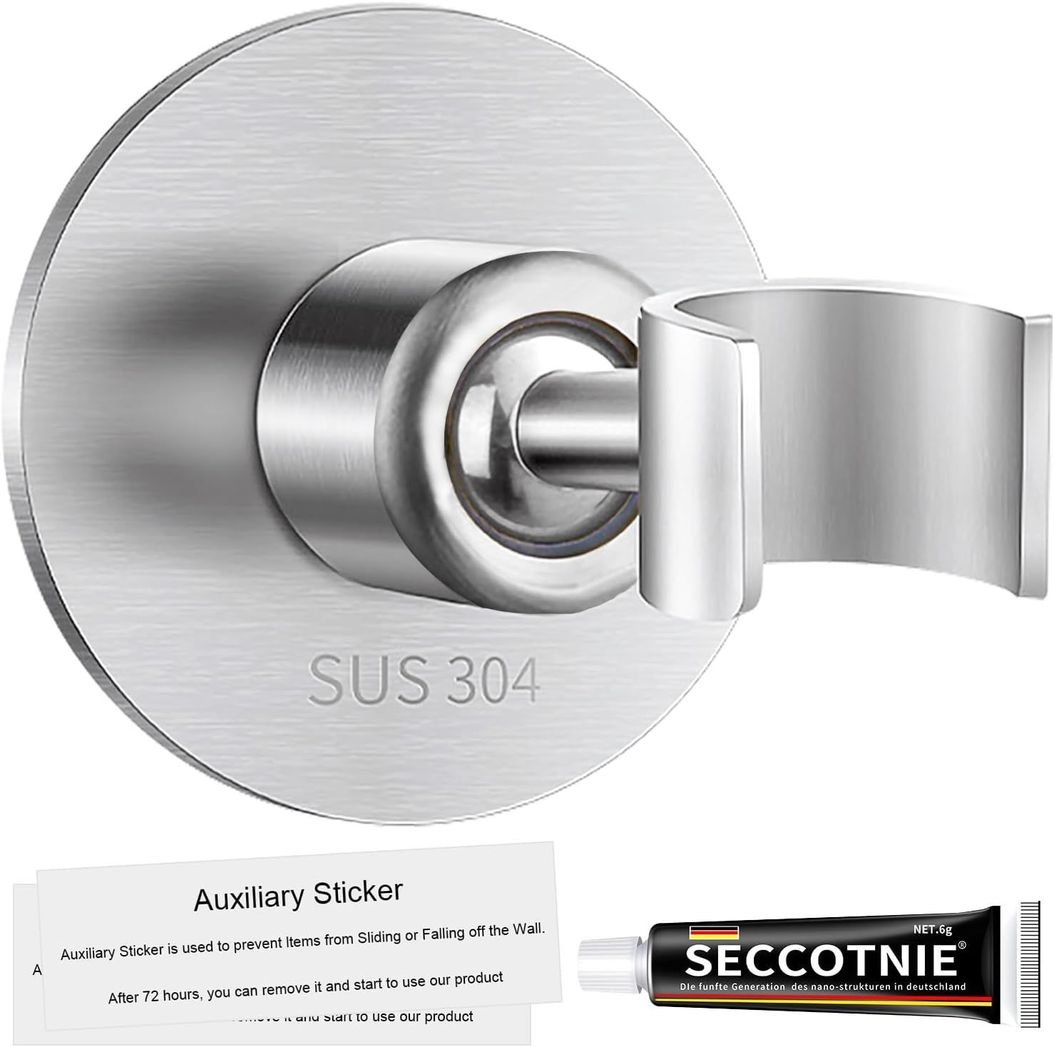 Support Pommeau de Douche Sans Percage, Acier Inoxydable 304 Universel Support de Douche Avec Colle Forte Support Douchette Mural Fixation Pommeau de Douche Réglable à 360 °(Argent)