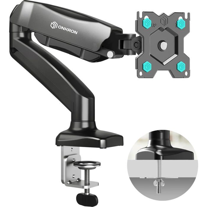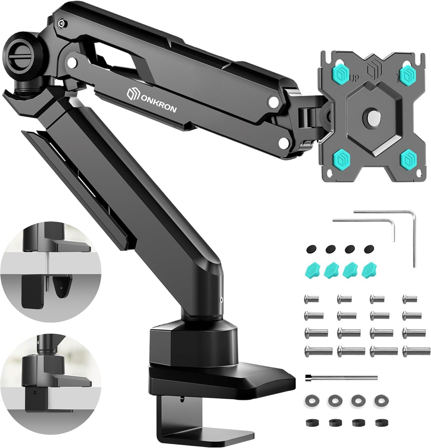 ONKRON Bras Ecran PC pour 13-34 Pouces, Support Ecran PC Bureau Poids de 10 kg, Bras d Écran Ressort à Gaz VESA 75x75 & VESA 100x100, Support Moniteur Bureau Plein Mouvement Noir G90-B